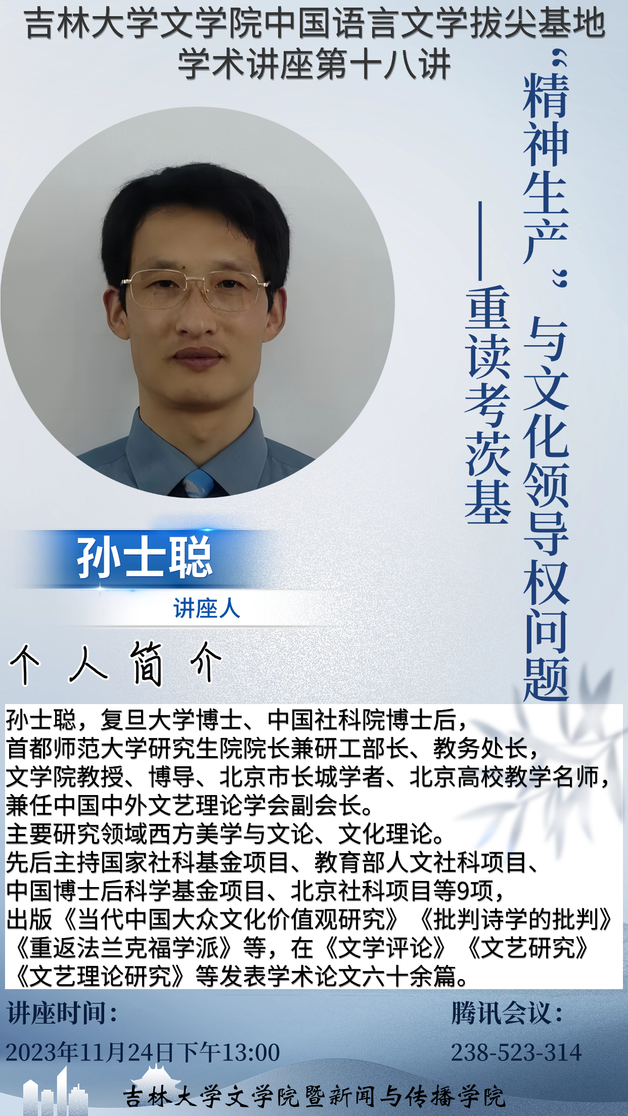 讲座题目:《“精神生产”与文化领导权问题——重读考茨基》