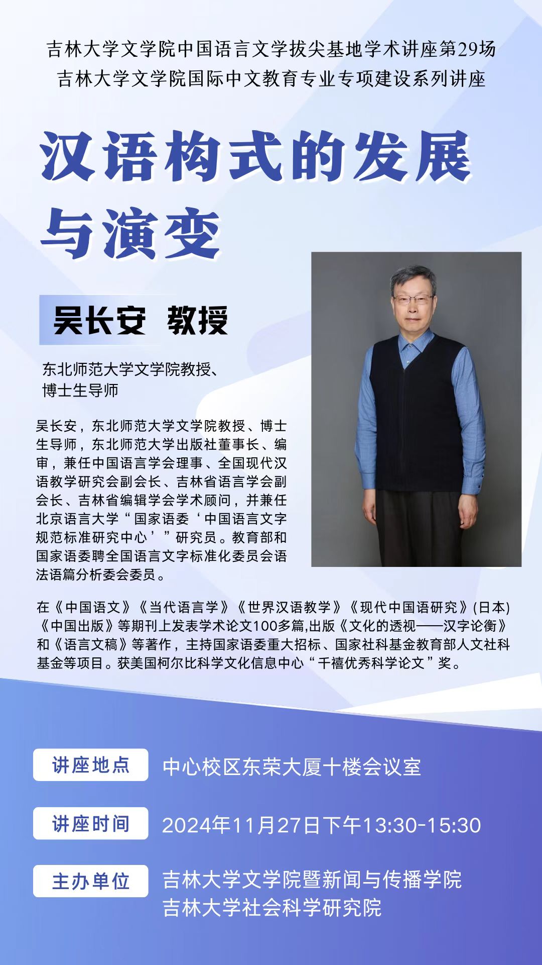 讲座题目:汉语构式的发展与演变