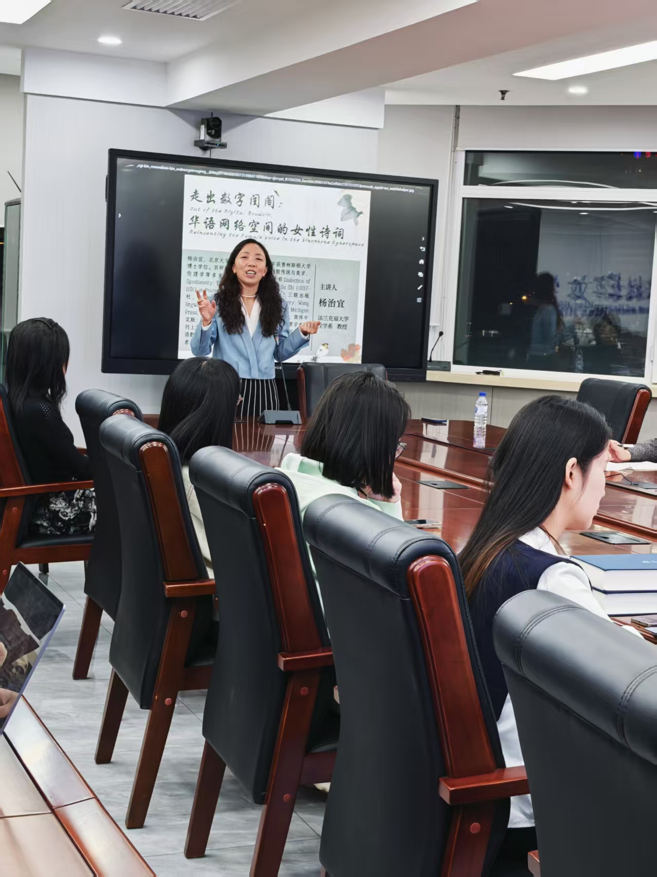 讲座在东荣十楼会议室举行。本次讲座由杨治宜教授主讲,讲座主题为《走出数字闺阁:华语网络空间的女性诗词》,4K影视