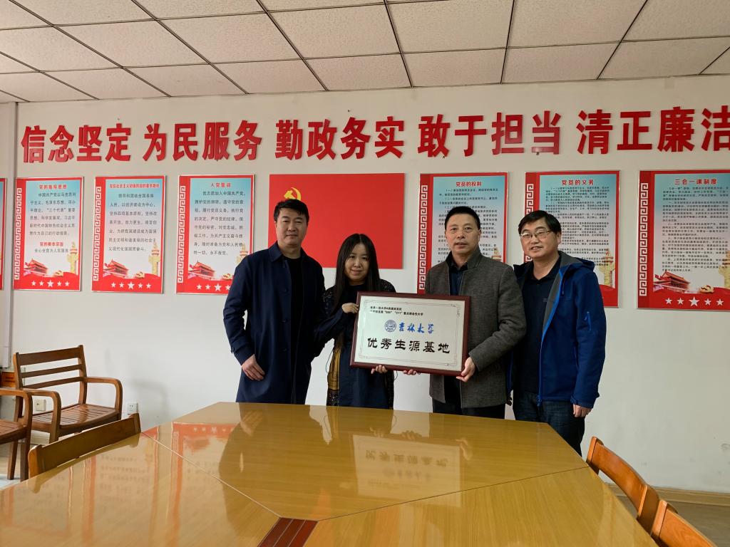 建立长期合作,为拔尖学子拓宽深造渠道。最后,我们将“优秀生源基地”的牌匾交到了郭惠宇校长手中。