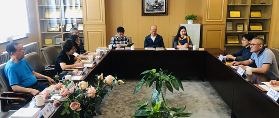 暨新闻与传播学院党委副书记郝淑媛教授与中国建筑一局(集团)有限公司总承包公司党委书记、董事长张浩校友座谈)