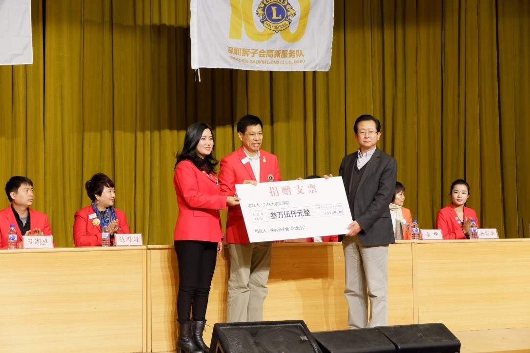 捐款8万元。郝淑媛老师宣布获奖者名单并由狮子会的狮兄狮姐为学生颁奖。颁奖结束后,获奖学生代表,博士研究生陈俊达进行发言,对4K影视