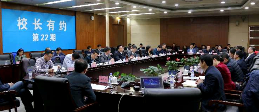 报记者 晓蔚 摄/晓蔚】4月4日,以“深化教育教学改革”为主题的第22期“校长有约”在中心校区东荣会议中心第一会议室举行。校长李元元、副校长郑伟涛,校长办公室、学生工作部、研究生院、教务处、人力资源和社会保障处、国际合作与交流处、招生办公室、学生就业创业指导与服务中心等相关职能部门负责人与来自相关学院的领导和教师代表近60人进行了座谈。会议由郑伟涛主持。座谈会围绕主题“双一流”建设和人才培养进行了热烈而充分的讨论和交流,成为学校开展教育思想大讨论的前奏和序曲。