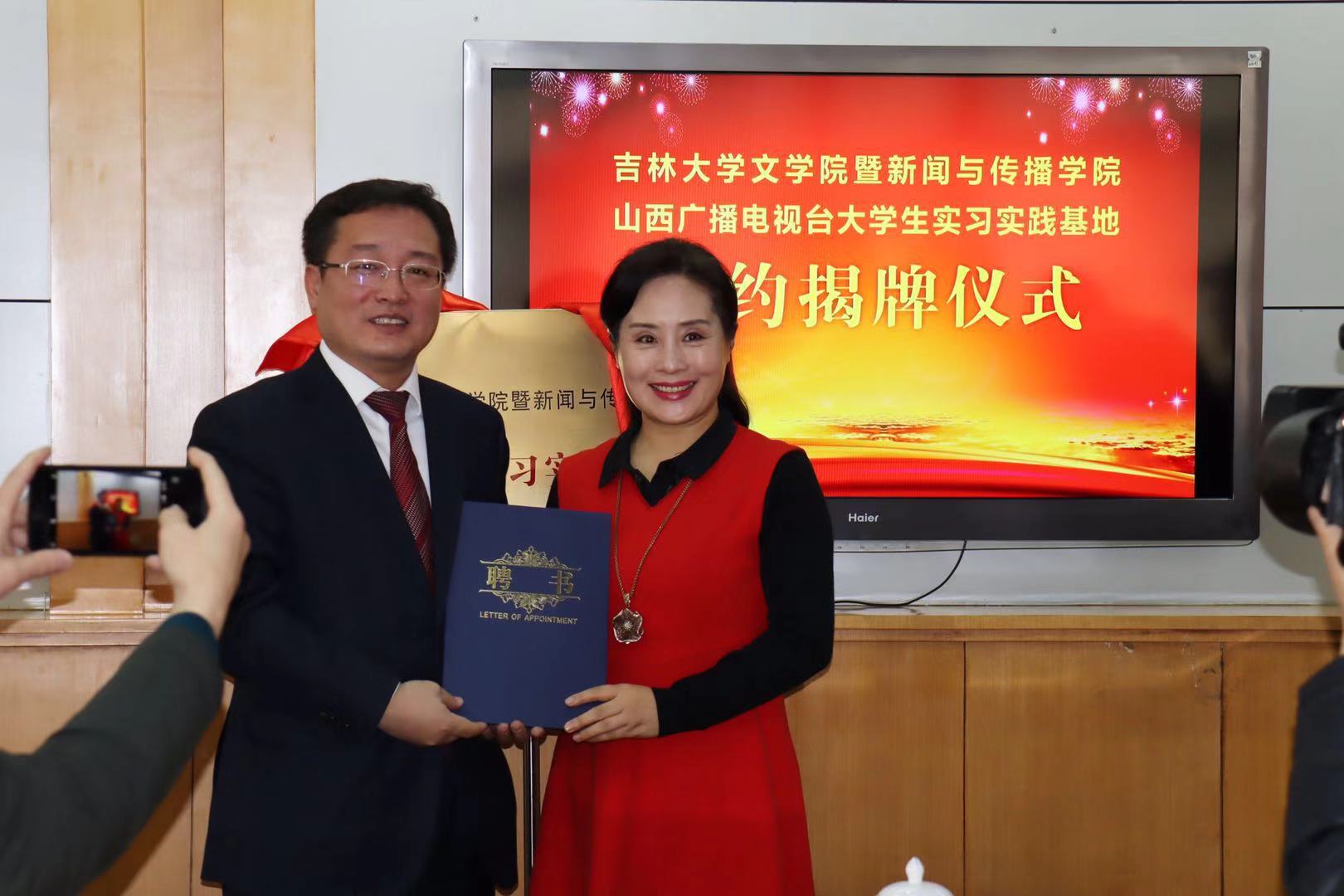 暨新闻与传播学院同山西广播电视台共建大学生实习实践基地签约揭牌仪式现场。