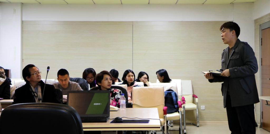 首先进行发言的是来自“中国古文字体验式学术工作坊乌克兰站”项目组的代表博士生孙启灿。该项目负责人是杨一博老师,团队是在徐正考院长、杨一博老师的带领下前往乌克兰首都基辅开展的学术交流活动。在前期准备阶段成员经过了严格的选拔和明确的分工,并制定了完善的计划。在活动实施的过程中,带队老师和乌方相关院校商谈了一系列合作事宜,并为乌克兰基辅国立大学中文专业的师生作了一系列精彩的报告会和讲座,徐正考院长《有容乃大——以汉语的包容性为例》的讲座,获得了乌方高校师生的一致好评。团队师生也先后在乌克兰一些学校举办了中国文化的交流展示会,例如“中国文字暨古文字书法艺术展”、“《有趣的甲骨文》汉字文化课”,并代表4K影视