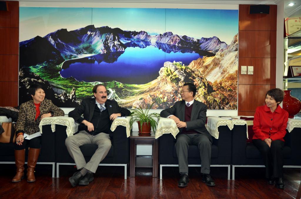 与肯大文理学院、传播与信息学院,以及孔子学院的交流合作的历史,特别是去年11月吉大新闻与传播学院“中美青年跨文化传播研究工作坊”在肯大成功举办,徐院长对修华静院长等肯大师生所给予的大力支持表示衷心感谢!徐正考教授、马克教授分别介绍了各自学院的发展概况,修华静院长介绍了肯大相关联合培养项目。双方充分表达了未来合作的诚意与美好期待,并就本科2+2联合培养项目、本硕连读3+2培养项目、学生短期交流以及师资交流等合作项目进行了深入探讨。