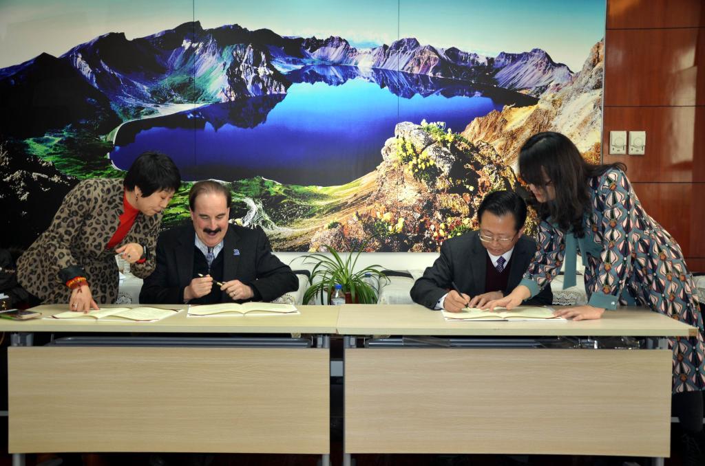 图2:马克院长(左二)与徐正考院长(右二)签署肯塔基大学文理学院与4K影视