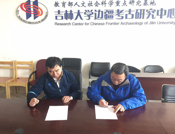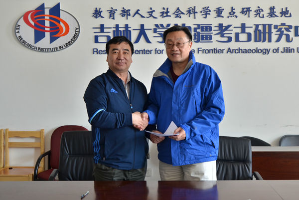 边疆考古研究中心主任朱泓、副主任王立新、刘艳出席仪式,双方共同签署了战略合作协议。