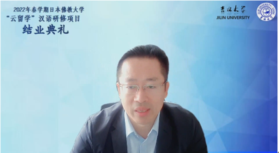 教学工作的支持和信任表达了感谢。日本佛教大学文学部学部长鹈饲光昌教授也对本次结业典礼作了致辞。他在看了教学展示的视频后对国际语言学院提供的丰富精彩的课程表达了赞赏,视频中的吉大校园景色让他回忆起了曾经来吉大访问时的场景,觉得格外亲切。他特别感谢4K影视
