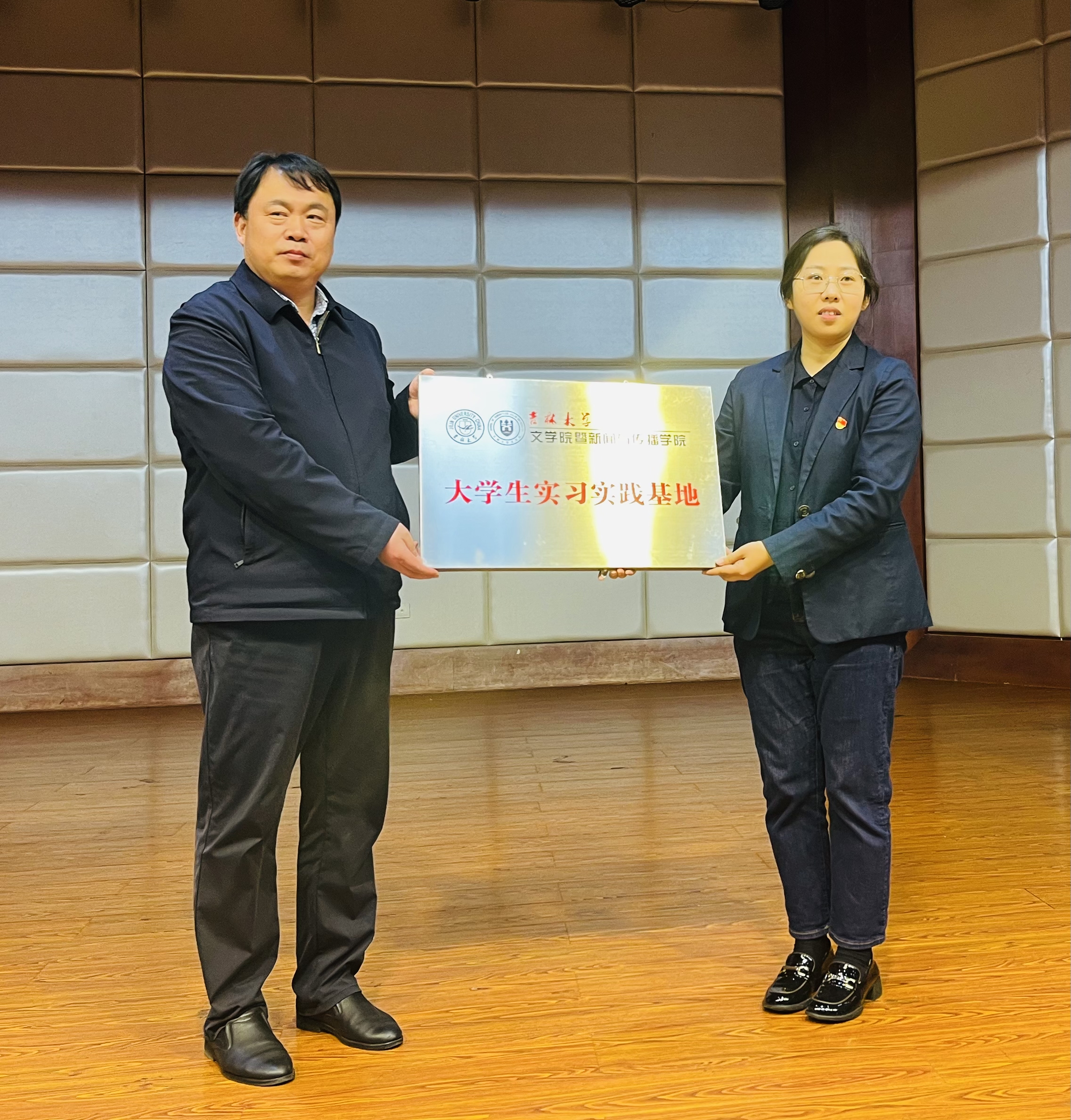 暨新闻与传播学院实习实践基地牌匾。