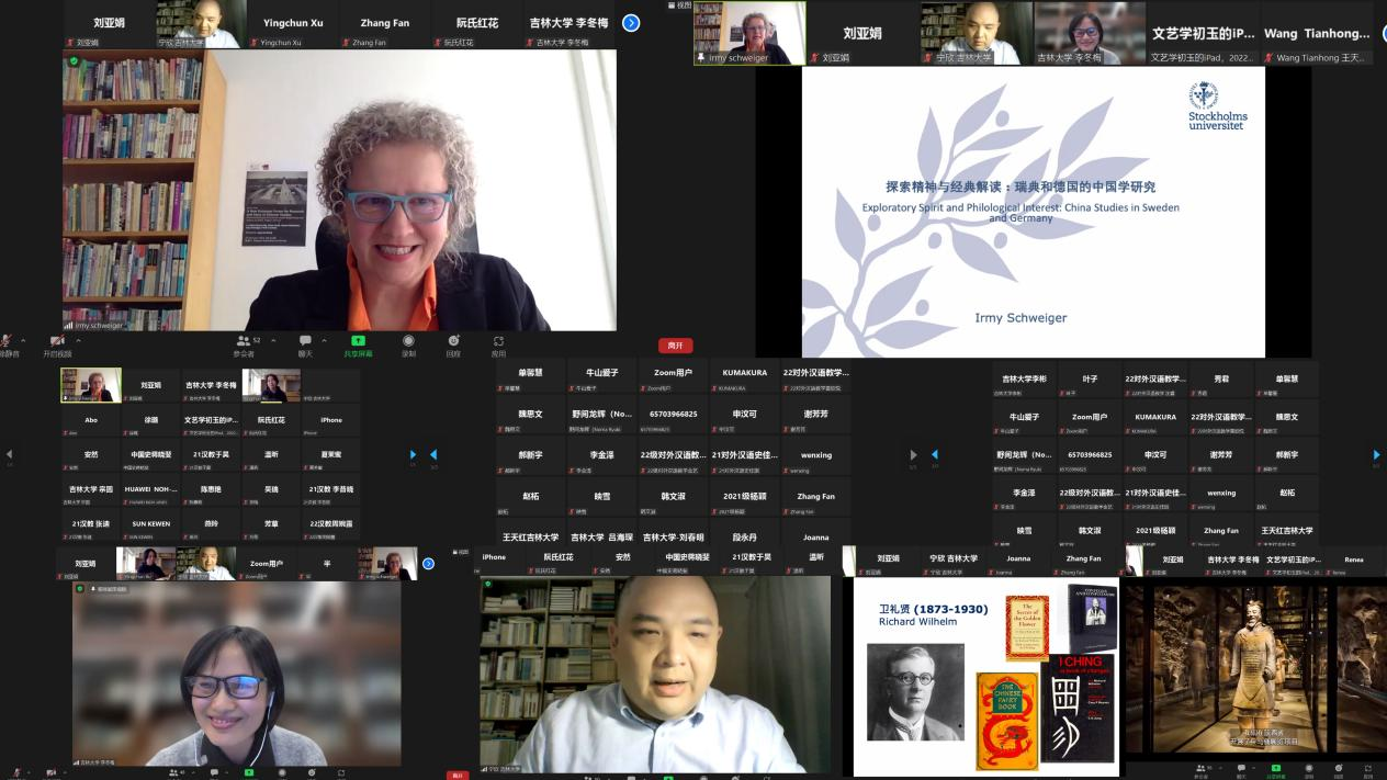 与国际语言学院共同举办了“探索精神与经典解读:瑞典与德国的中国学研究”讲座。作为学院“文化融合·学术共建”系列讲座之一,本次的主讲嘉宾邀请到的是来自斯德哥尔摩大学亚洲与中东研究中心的Irmy Schweiger(艾米·施威格)教授。Irmy Schweiger教授的主要研究领域为中国文学、中德跨文化研究、文艺评论、城市文化等。本次讲座Irmy Schweiger教授为我们梳理了瑞典和德国中国学的缘起、发展以及现状,并对代表人物及其学术贡献进行了详细介绍。瑞典与德国的中国学研究具有悠久的历史并取得了丰硕的成果,已经形成风潮、形成传统、形成学派、形成规模。当代的中国学研究仍在继续发展,西方对中国社会、文化、历史、语言等领域的探索仍在进行。主讲人Irmy Schweiger教授以教师和研究者的双重身份,通过史实论证为我们创建出一个跨文化空间,促进听众对瑞德两国中国学研究的理解与认可。在交流互动环节,师生踊跃提问,Irmy Schweiger教授与线上师生进行了热烈的讨论,并耐心回答了师生们的提问。