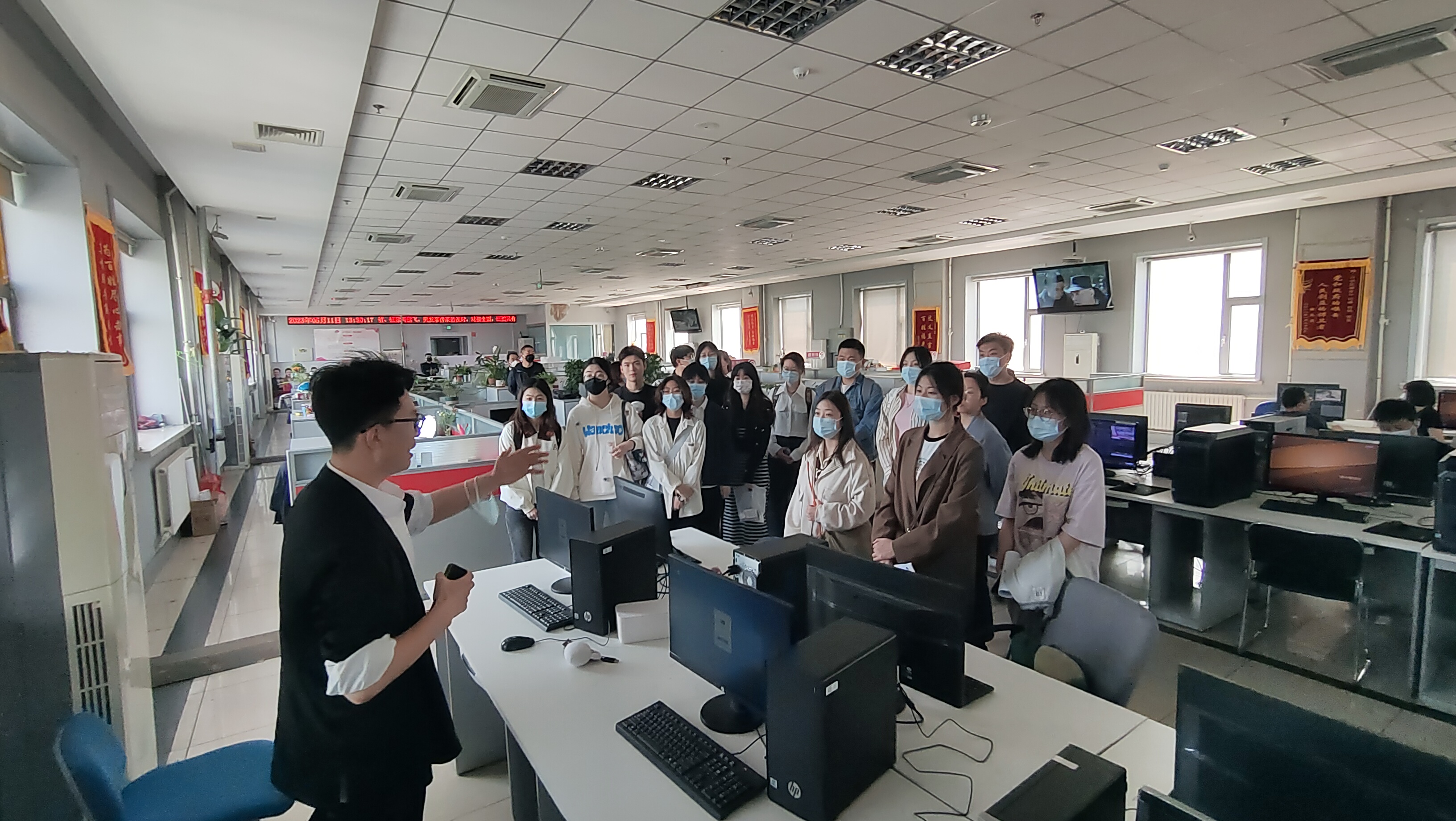 5月11日,学院党委副书记刘卓、杨一博和辅导员李沐函、曲昭琦携15名学生赴吉林广播电视台都市频道调研,深入新闻生产前线,开展访企拓岗促就业专项行动。