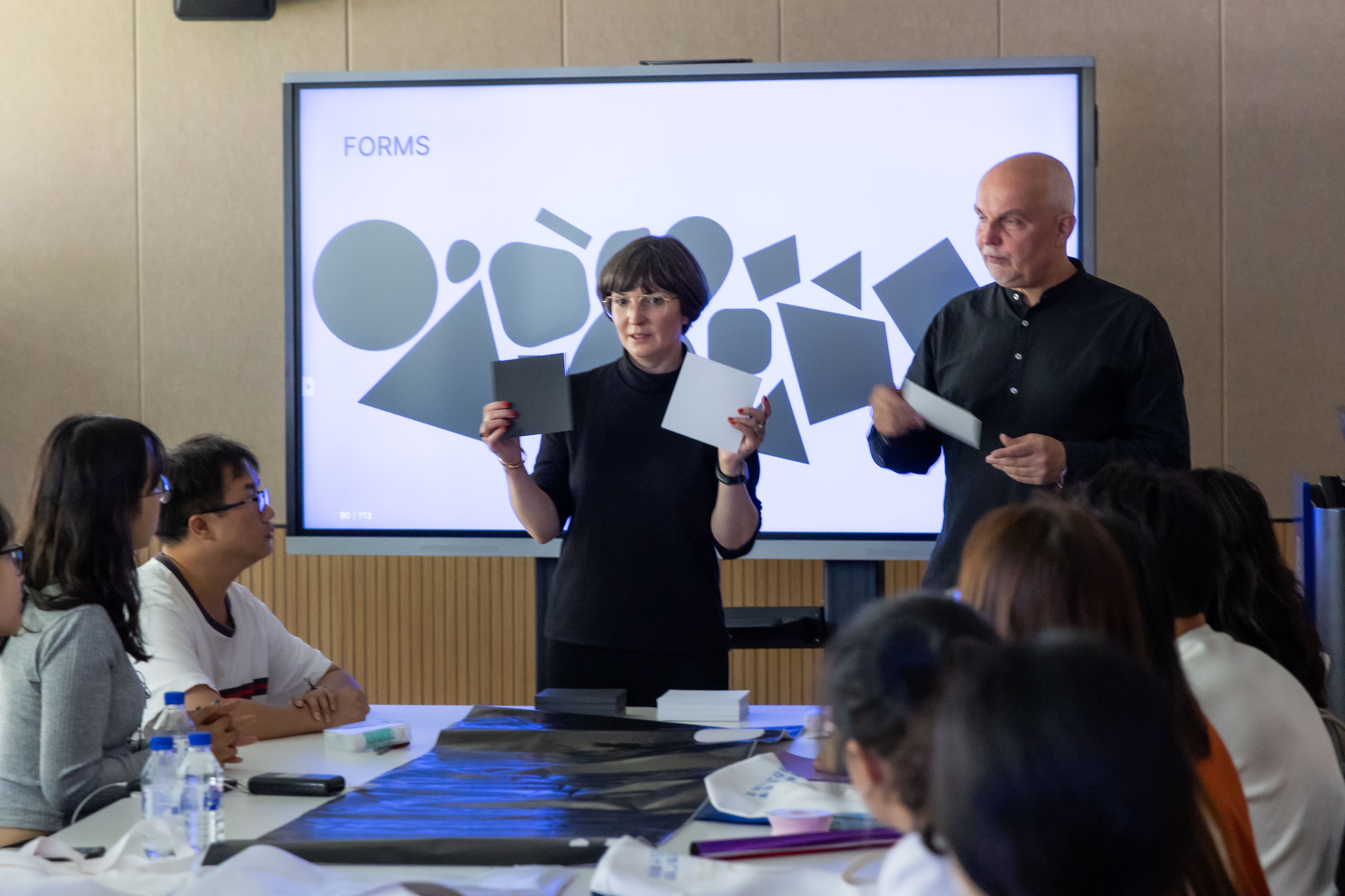 9月22日,Markus Weisbeck教授和Vera Kunz教授逐一点评作品并指导同学们进行修改,完成修改后,教授将同学们的作品放在一起,请大家讨论选出自己最喜爱的作品。在几位同学发言后,Markus Weisbeck教授和Vera Kunz教授强调,设计的“好”与“不好”是主观判断出来的,没有固定的标准;艺术要从个人感受中阐发,永远也不要忘记创作时的感受。