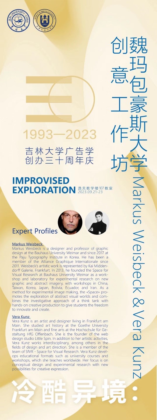 广告文化研究中心邀请到了魏玛包豪斯大学Markus Weisbeck教授和Vera Kunz教授在中心校区逸夫教学楼107教室举办”IMPROVISED EXPLORATION”创意工作坊。工作坊由4K影视