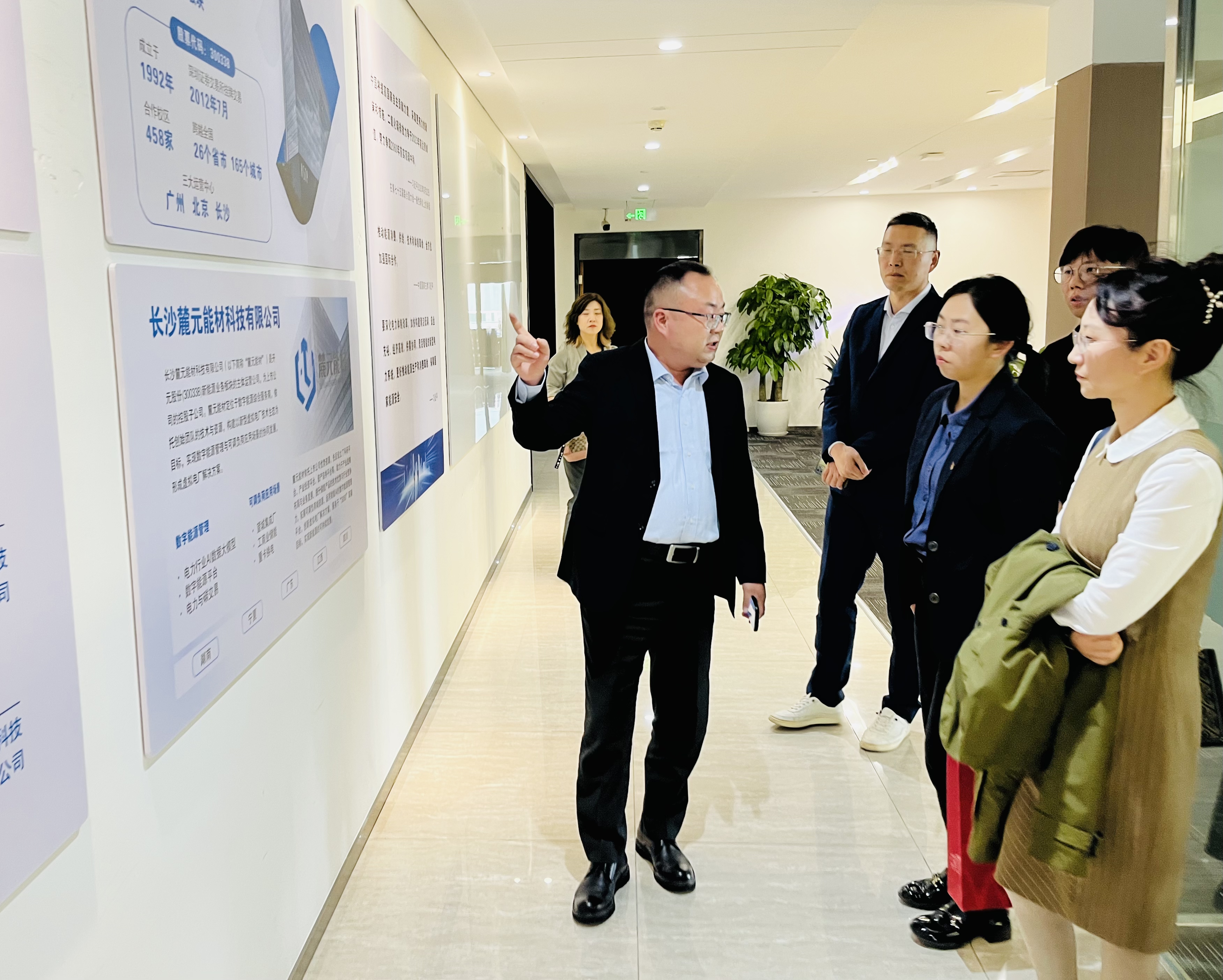 在长沙市岳麓区梅溪湖产业园区,杨一博一行走访参观两家校友企业,深入了解企业的经营模式、发展历史、4K影视。参观结束后,杨一博与长沙麓元能材科技有限公司陈天扬、湖南中技华软知识产权基金管理有限公司张瑶进行交流座谈,杨一博介绍了4K影视