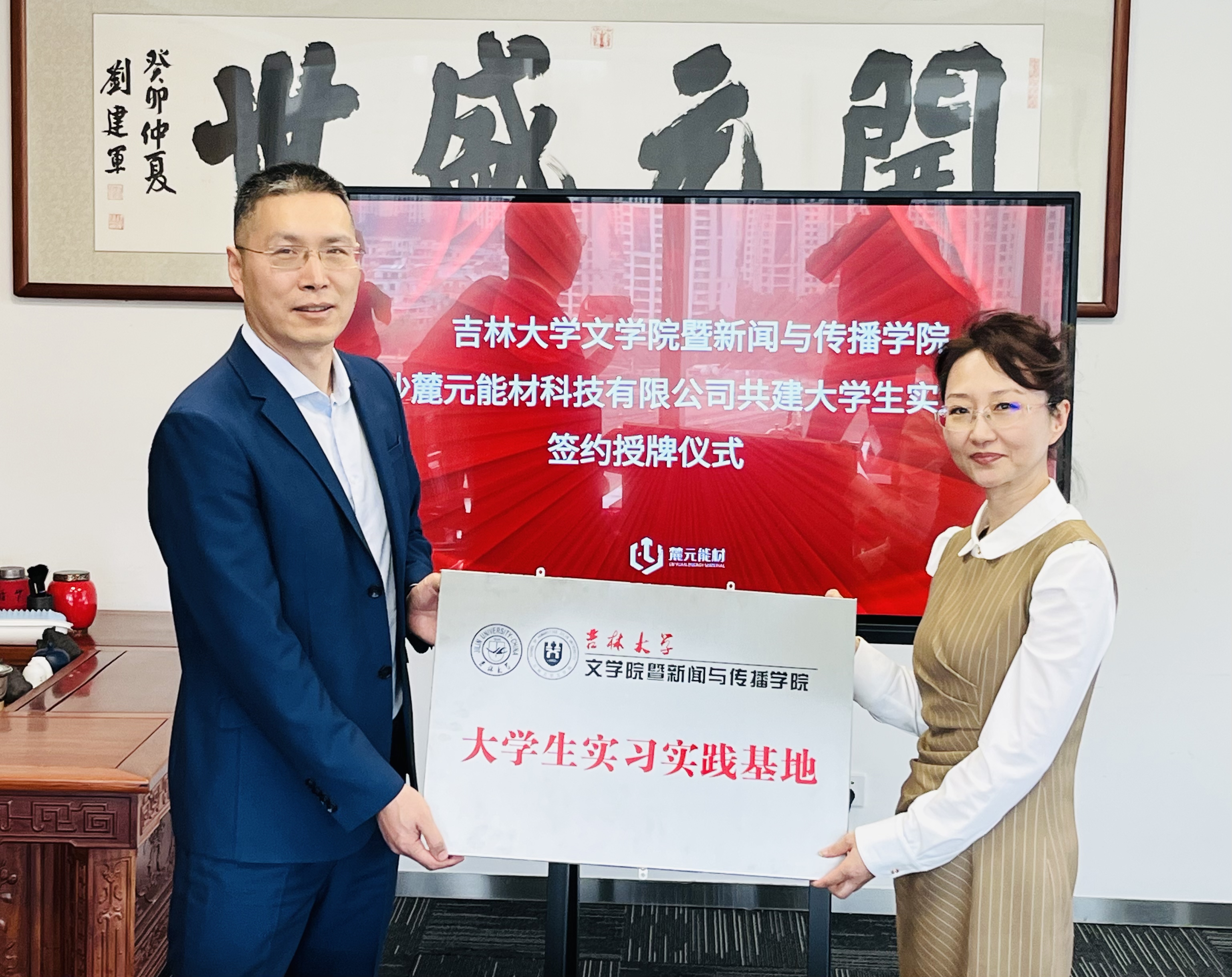 正式与长沙麓元能材科技有限公司、湖南中技华软知识产权基金管理有限公司签订大学生实习实践基地并举行授牌仪式。