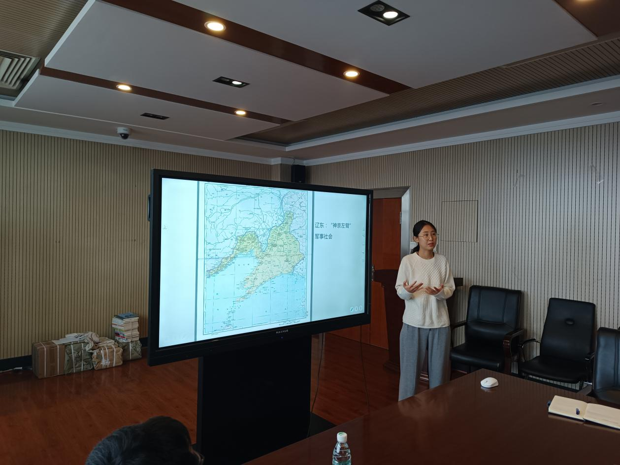 “励新优秀青年教师”培养计划入选者、中国史系李文玉副教授作了题为“明代辽东地区乡贤祠考论”的学术报告。李文玉副教授通过对文献的细致比对和分析,考证出了辽东乡贤祠的数量、位置和主导修建者等关键细节,分析了辽东乡贤祠的建置特点和乡贤入祀条件,并以辽东地区乡贤祠为切入点,探究了明代辽东地区儒学认同和地域认同的推进路径。报告完成后,李佳教授、蒋金玲教授、王坤鹏副教授、陶莎副教授、吴翔宇老师相继对报告进行了评议,认为这一报告对文献梳理细致,推进了对于辽东地区文教和儒学发展的认识,深化了对地域认同的研究。与会学生也针对报告内容积极提问,李文玉副教授和各位老师对同学们的问题进行了细致解答,围绕乡贤祠、明代文教政策、辽东区域、儒学认同和地域认同等问题展开了讨论。