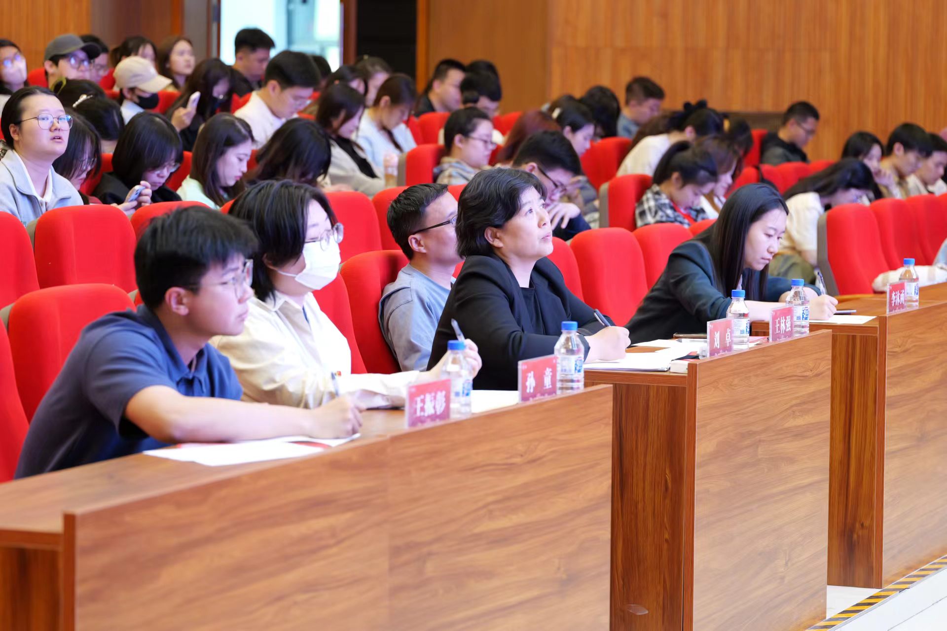 党委副书记刘卓老师、研究生辅导员王林强、李沐函、孙童老师、本科生辅导员王振彰老师受邀作为评委。学院本硕博党员及积极分子同诸位老师一起,见证了比赛的精彩瞬间。