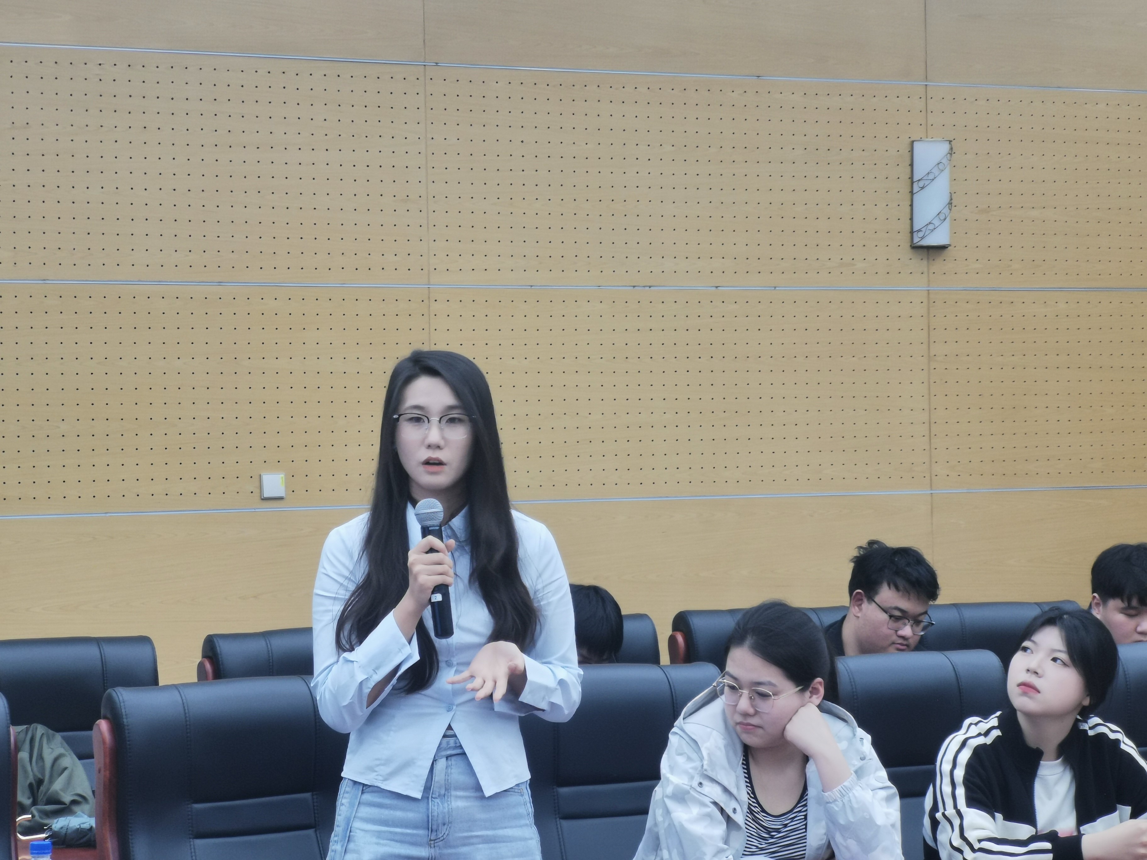 会议现场气氛热烈,不时响起阵阵掌声。2020级与2021级新闻学专业同学就保研面试经验、考研复习策略及就业心态调整和岗位选择等问题进行了深入具体的交流,刘炳辰同学以风趣的举例向师弟师妹们强调了“配得感”的重要性;陈思竹和尹冠文则结合自身经历表示,辅修专业对于就业或读研选择能够起到重要的拓展意义;周思岐介绍了保研本校的三种途径,并就相应的准备方式进行了经验分享。