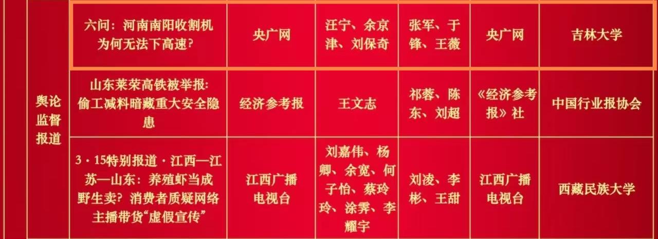 新闻与传播学院报送的2件作品:央广网的舆论监督报道《六问:河南南阳收割机为何无法下高速?》(作者:汪宁、余京津、刘保奇,编辑:张军、于锋、王薇)、人民日报的系列报道《一线调研·经营主体看活力》(作者:白之羽、杨文明、林琳、姚雪青、程焕、沈寅,编辑:吕钟正、韩春瑶、林子夜)双双获得第34届中国新闻奖二等奖。该院自2016年成为中国新闻奖试点报送单位以来,至今已有6件初评报送作品获得中国新闻奖。