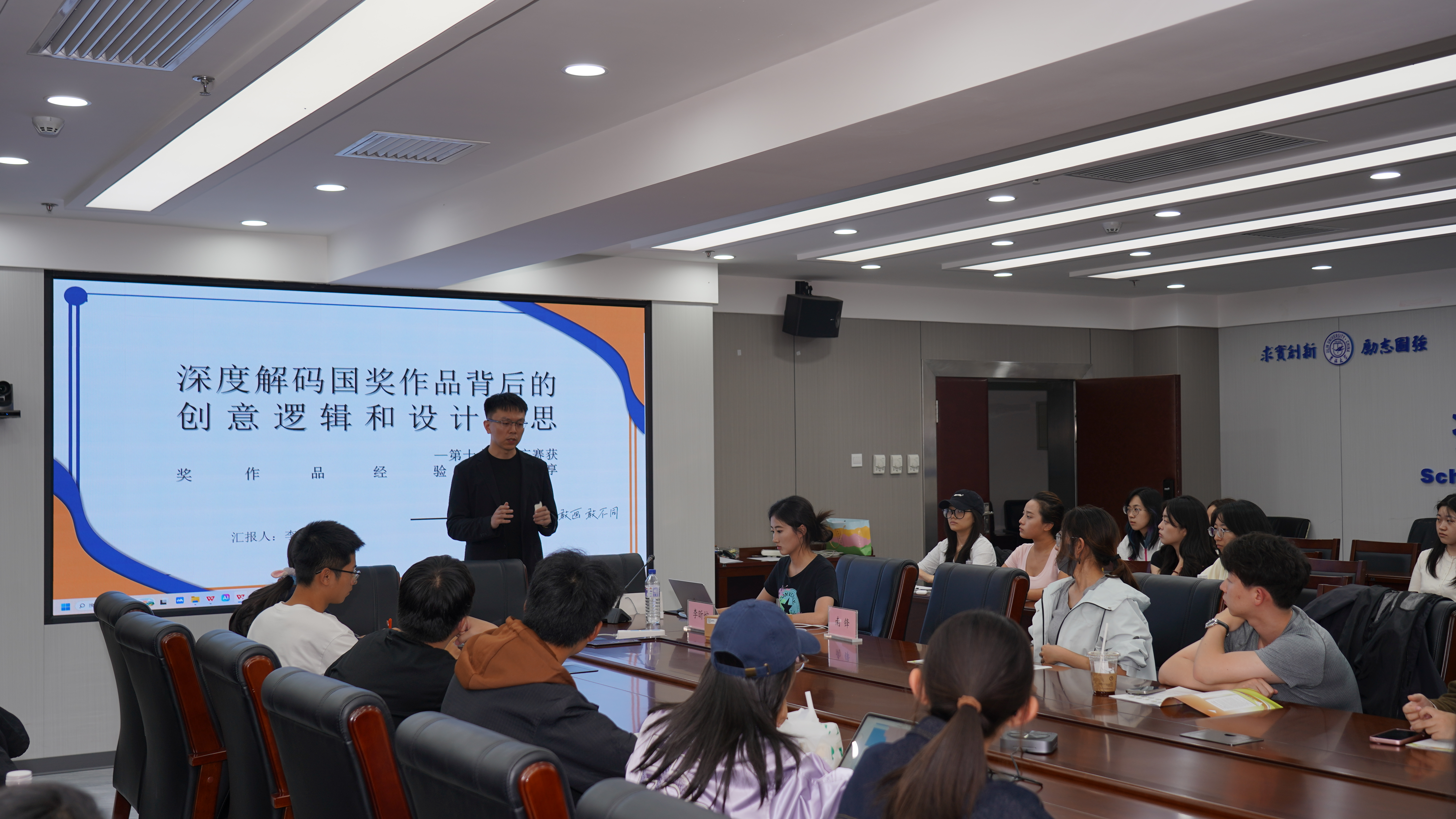 、新闻与传播学院、法学院等各院研究生,由南锋老师主持,国家级获奖作品《甲骨新语》主创成员李昕婉同学作主题分享。