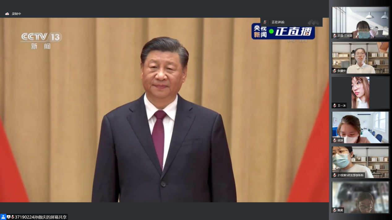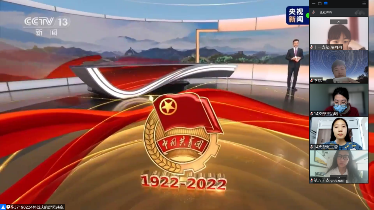 暨新闻与传播学院党员代表、团学干部、入党积极分子在集体在线上观看直播,认真聆听学习习近平总书记重要讲话,共庆中国共产主义青年团百年华诞。