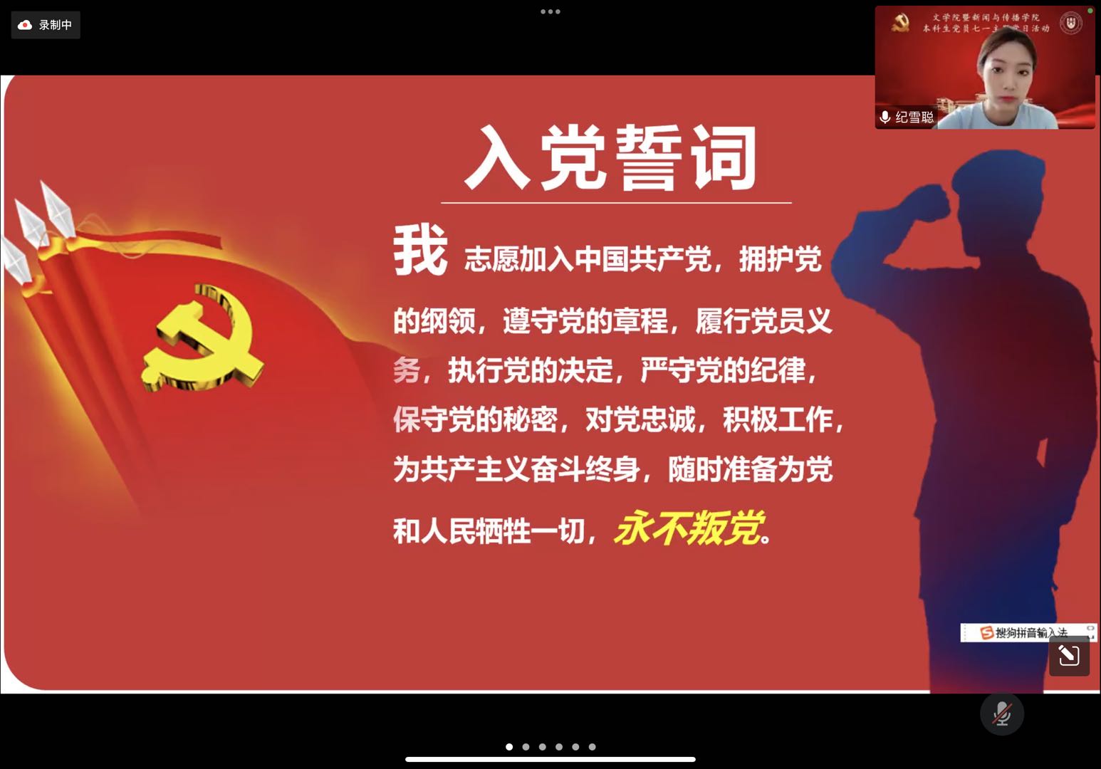 暨新闻与传播学院开展本科生党员七一主题党日活动,全体本科生党员通过腾讯会议参与。