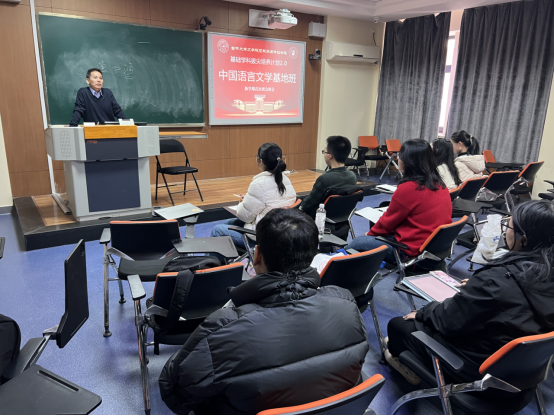 杨一博总结了同学们上一学期的学习生活,对大家提出表扬与鼓励,随后重点为同学们介绍了2022级中国语言文学拔尖基地的成长档案设计制作情况,向同学们讲解了成长档案的设计模式与主要用途,面向同学们征集编辑意见,师生共同致力于完善拔尖基地班的管理建设工作。辅导员王振彰老师从班委设置、日常工作等方面对同学们提出指导性意见,助力中国语言文学拔尖基地班走向更美好光明的未来!