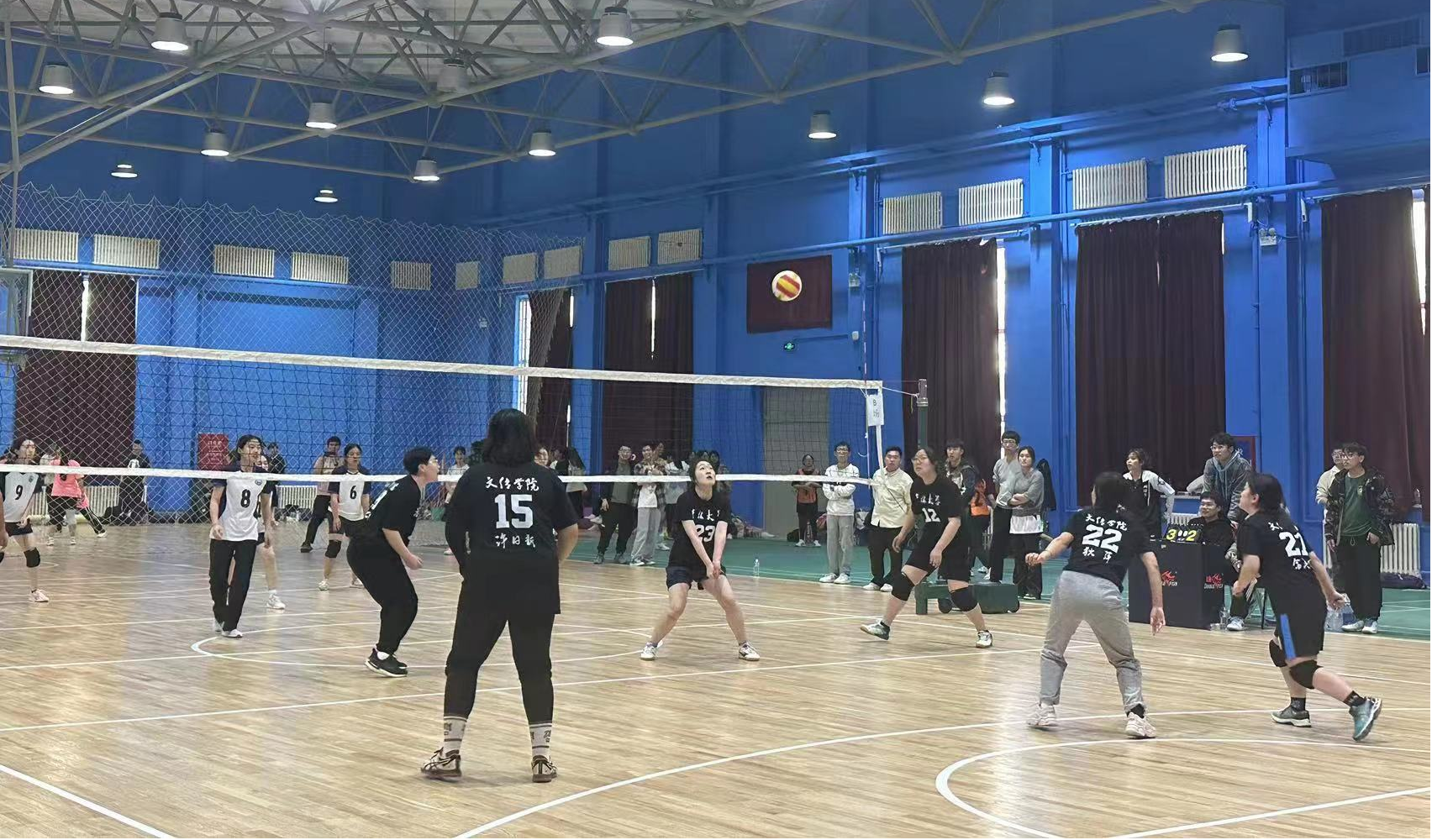 第一场的对手是动物医学院,文传女排凭借默契的配合和精准的传球以2:0的大比分优势取得胜利。在第二场与口腔医学院的比拼中,面对实力强劲的对手,女排队员们没有丝毫畏惧,拼尽全力守住每一分。赛场边她们互相加油打气,赛场上她们稳定发挥。最终虽然不敌对手,但是却赛出了文传女排的风采。经过三轮角逐,文传女排总比分位列小组第二,成功晋级第二阶段交叉赛。在第二阶段交叉赛中,文传女排在最后一场比赛中聚力同心,配合默契,以2:1的大比分战胜了经济学院,最终取得第七名的极佳名次。