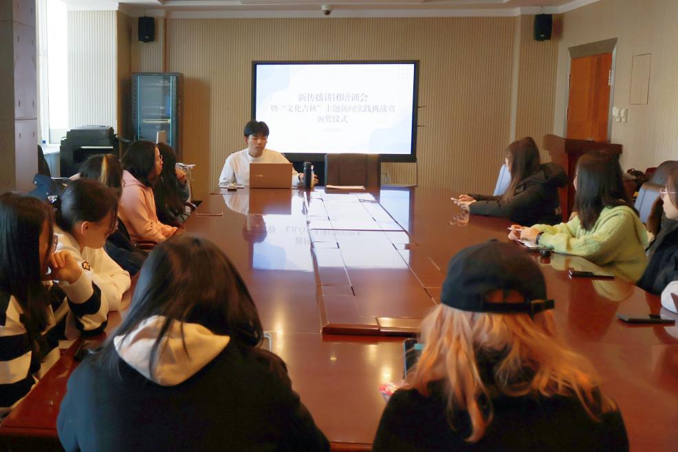 暨新闻与传播学院团学组织4K影视于东荣大厦十一楼会议室召开“新传播讲团”寒假班第四场新闻实务培训暨结课仪式,4K影视主任闫梓锋、刘晨欣主持本次会议,4K影视学生记者参加会议。