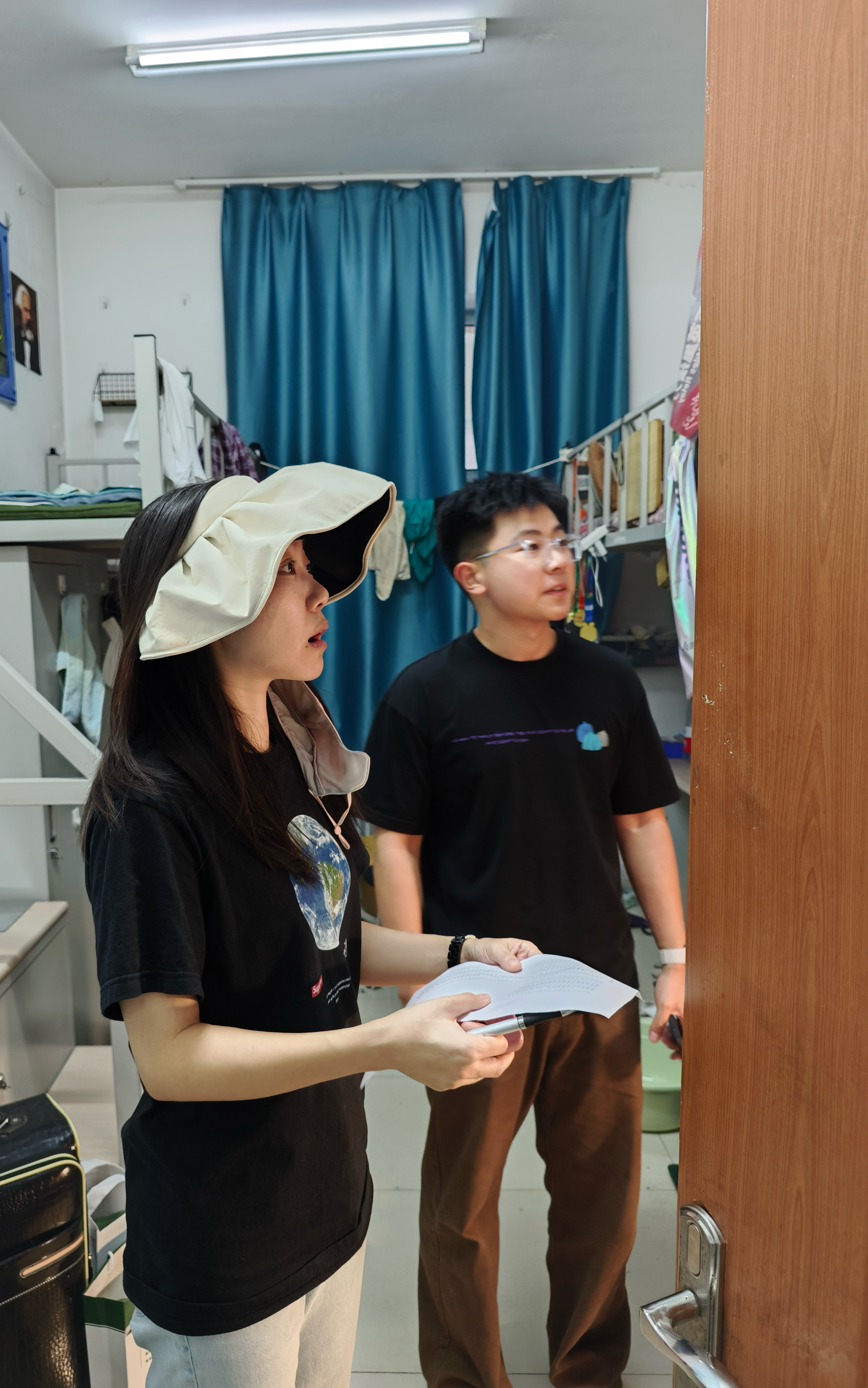暨新闻与传播学院2022级开展寝室走访工作,学生工作办公室主任、2022级辅导员李芊满,2022级兼职辅导员王振彰深入4K影视