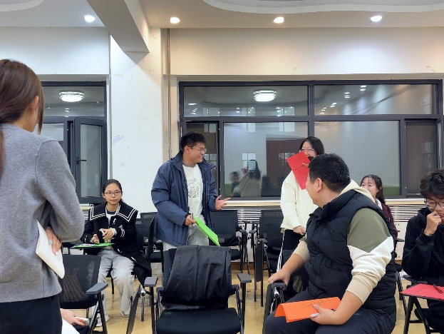 2024级中文基地班举办心理团辅活动时,心理委员组织大家进行了暖场游戏“东问西答”。游戏结束后,进入烦恼分享环节,同学们在主动分享自己苦恼的同时也积极参与到舒缓方法的讨论中,共同排解心中的烦恼。