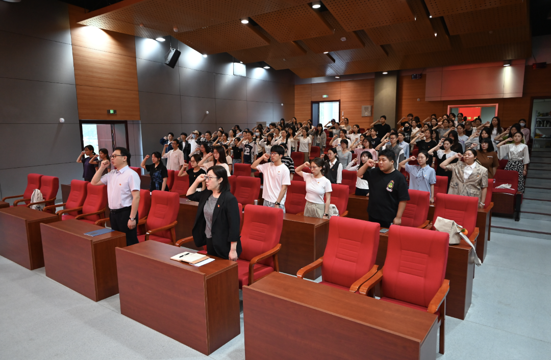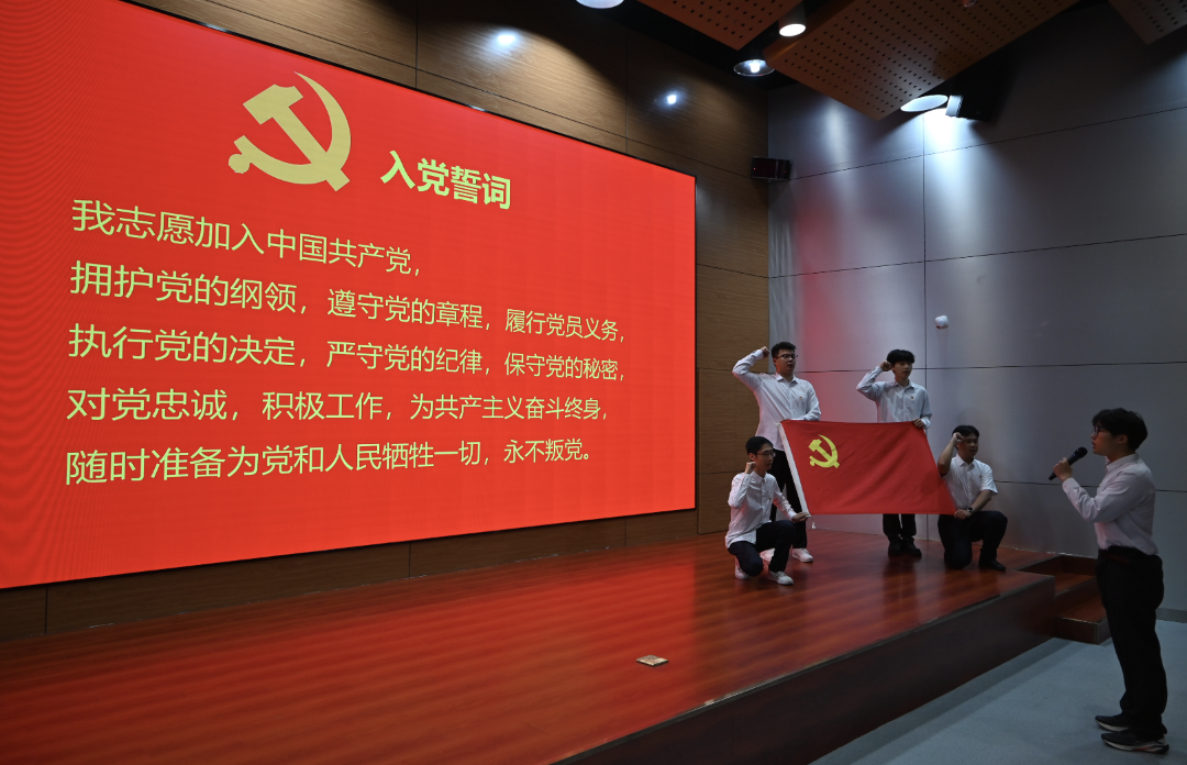 党课开讲前,由学生党员帅子星领誓,带领与会党员重温入党誓词,铿锵有力的誓言承载着党员们对党和人民做出的庄严承诺,以铮铮誓言彰显永恒初心,牢记党员使命。