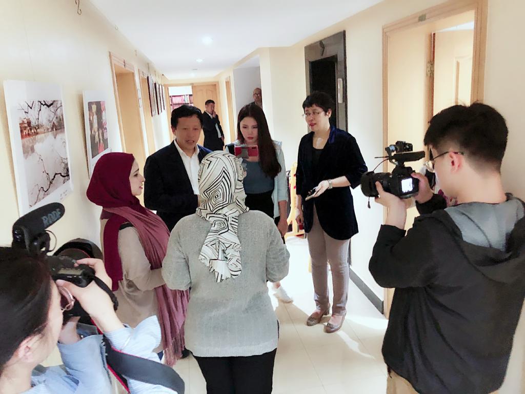 项目团队调研目标不仅包括政府、高校、媒体和产业实体,即政策制定者、语言运用者的基本情况,同时也包括中国商会、留学生团体、驻埃企业和本土媒体等。受埃及中国学生学者联合会主席摆克成的邀请,访埃期间,项目团队成员与中国驻埃及大使馆公使肖军正、文化参赞兼开罗中国文化中心主任石岳文及一秘王贺兰、二秘黑彦海和即将赴任的埃及驻中国大使馆文化参赞欧麦马就埃及的中国语言文化传播相关情况和政策进行深入访谈;对埃及中国商会会长王培中、中资企业协会田丰秘书长、驻埃央企中交一公局陈景华经理、“三·一重工”驻埃经理赵梓纲、民营企业家王虎以及驻埃新华社工作人员进行采访,了解中国语言文化在产业方面的应用;项目团队参加北京市国有文化资产管理中心和开罗中国文化中心联合举办的“感知北京·中埃文化产业交流对接”活动,品味中国传统技艺和埃及传统艺术的交融;上海社会科学院文学研究所和开罗中国文化中心联合推出的“中国文化之旅”系列讲座,权衡教授从经济学角度剖析中埃文化产业交流的广阔前景;实地探访艾因·夏姆斯孔子课堂,深入了解中国语言文化的异域传播。穿行在诺贝尔文学奖获得者马哈福兹笔下的麦格巷、宫间街,参观其闹中取静的故居和日常创作的平民咖啡馆,更深刻感受到其细致入微的创作风格。