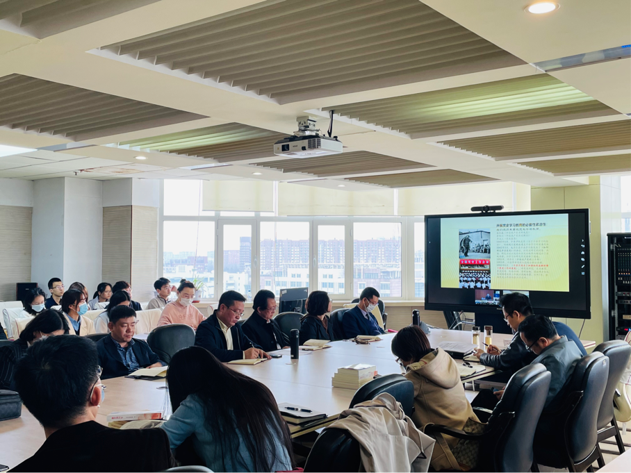 党委组织学院全体处级领导干部、党委委员、纪委委员、各系教工党员、学生党支部书记和支部委员于东荣十楼会议室在线观看视频直播,进行学习。
