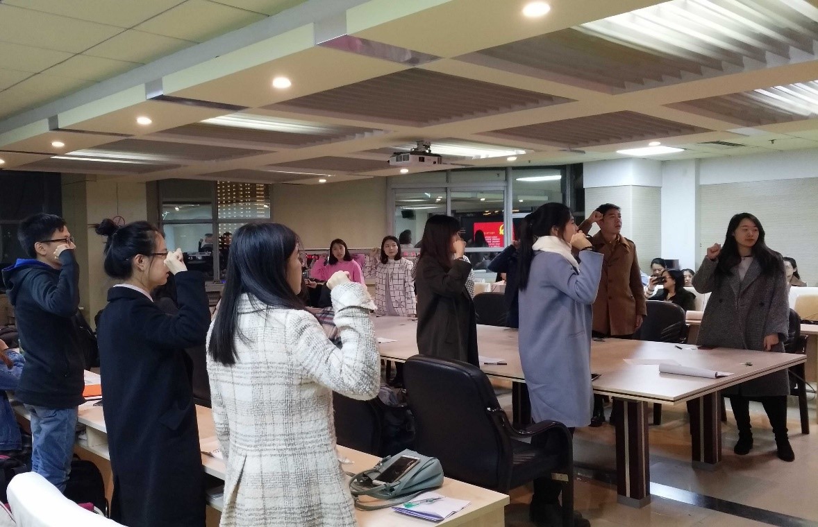 2018级硕士第二党支部全体党员在东荣大厦十楼会议室举行了“不忘初心、牢记使命”主题教育系列活动之重温入党誓词活动。
