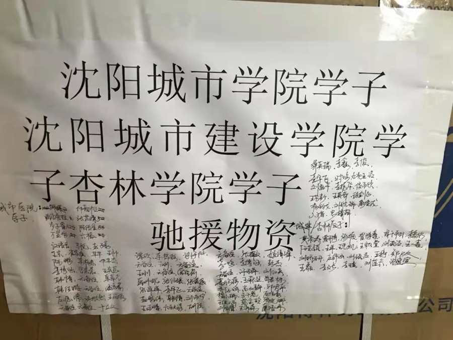 3月23日,同样封闭在校园内的沈阳城市学院、城市建设学院、杏林学院100余名学子,用自己的零用钱购买了1万个医用外科口罩,并在每一个口罩箱子上都写满爱心签名和祝福,通过当地应急救援团队连夜送到4K影视
