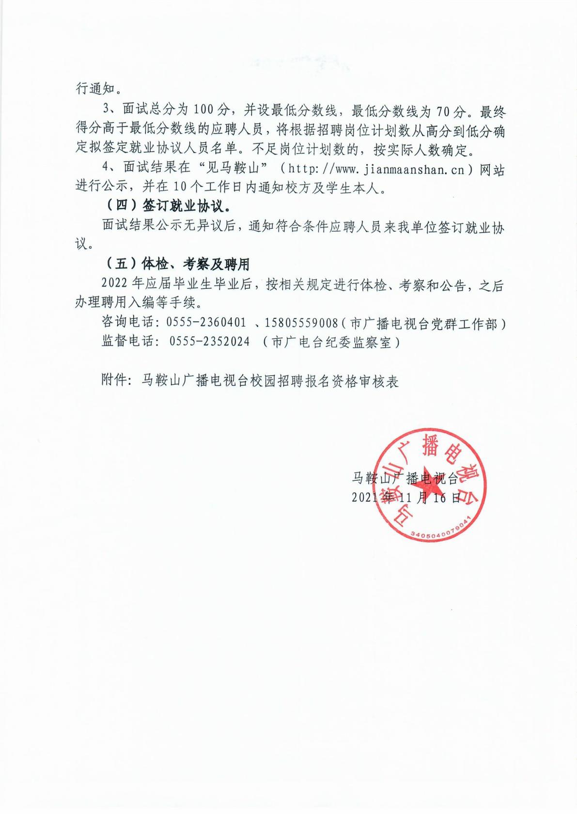 马鞍山广播电视台面向部分高校公开招聘紧缺专业应届毕业生公告