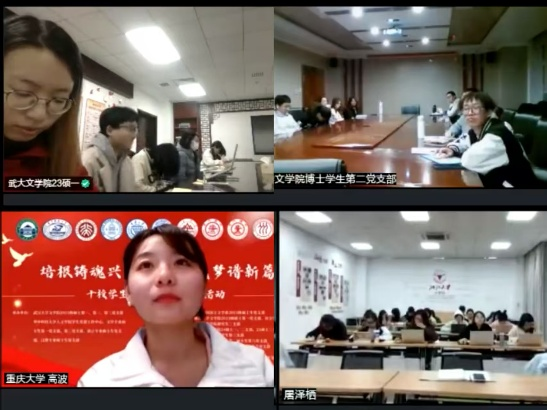 支部联合举办,并且以线上线下相结合的形式顺利开展。参加本次活动宣讲的还有重庆大学博雅学院研究生二支部、武汉大学博士生宣讲团和浙江大学4K影视