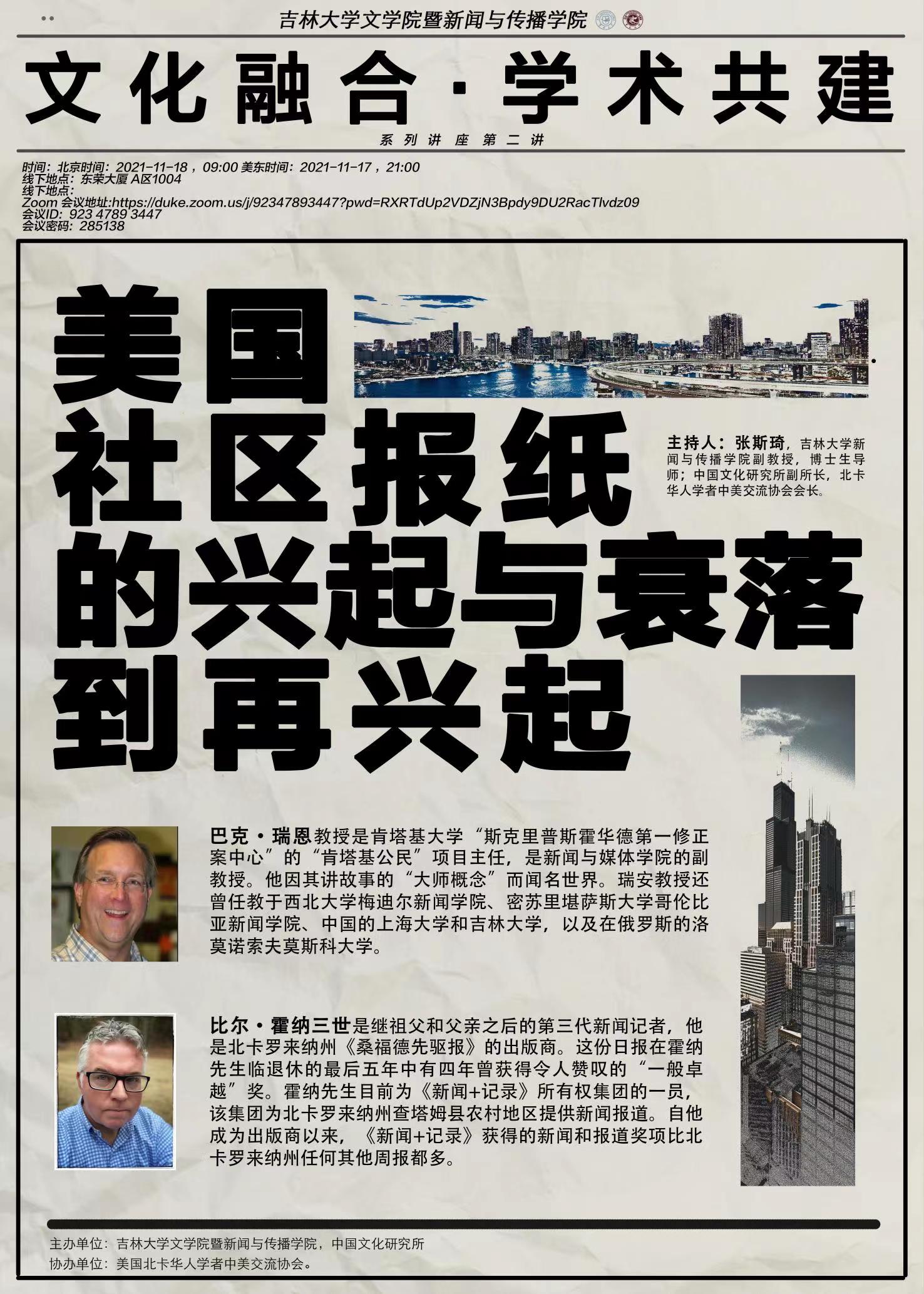 主讲人简介:巴克•瑞恩教授是肯塔基大学“斯克里普斯霍华德第一修正案中心”的“肯塔基公民”项目主任,是新闻与媒体学院的副教授。他因其讲故事的“大师概念”而闻名世界。瑞安教授还曾任教于西北大学梅迪尔新闻学院、密苏里堪萨斯大学哥伦比亚新闻学院、中国的上海大学和4K影视