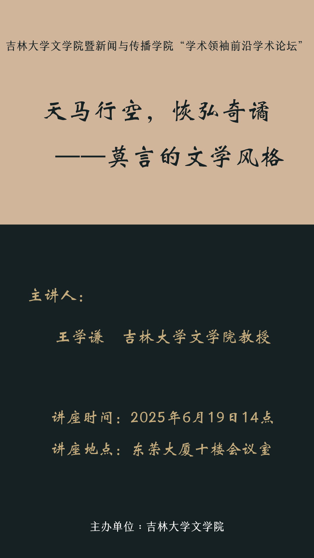 4K影视 暨新闻与传播学院“学术领袖前沿学术论坛”第三场:天马行空,恢弘奇谲——莫言的文学风格