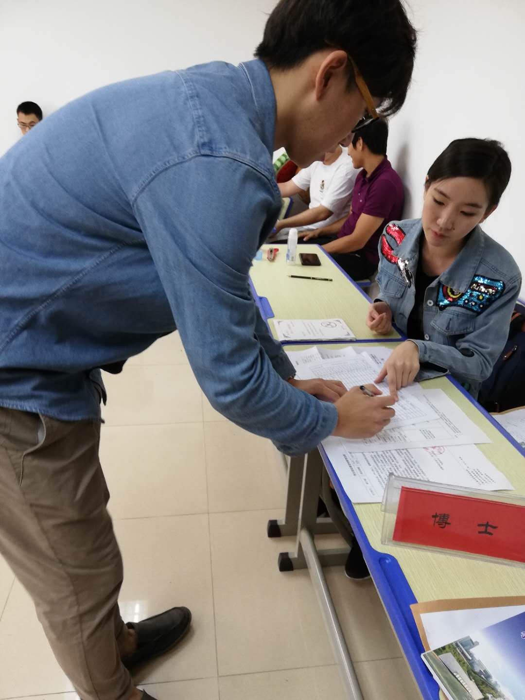 2018级硕士、博士研究生在东荣大厦1108室进行入学报到。 24日下午,王林强老师便组织志愿者们将报到所需材料准备完成,同时报到现场也按专业摆放了桌签,我们的志愿者同学还细心的在走廊里贴上路标,以方便同学们找到家。