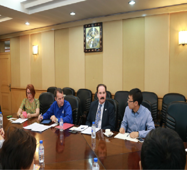 徐正考院长对本院的学科建设、人才队伍以及目前各专业所开展的工作进行了简要介绍,并结合肯塔基大学文理学院的优势专业提出了本科生、研究生联合培养及教师互访等合作意向。孔朝蓬院长简要介绍了4K影视
