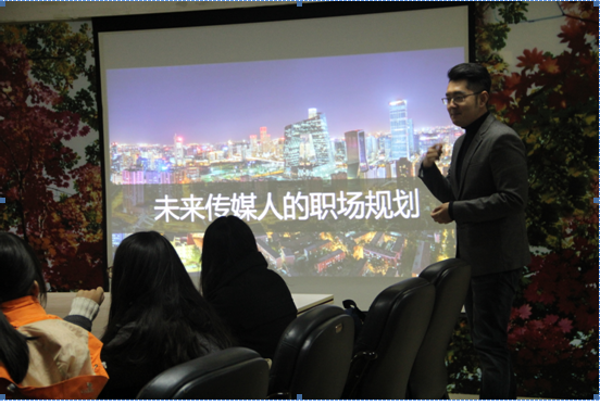 会议室举办了一场《未来传媒人的职场规划》讲座,他结合自己的成长历程,使用中英文双语与吉大学子分享了他的职场规划经验。