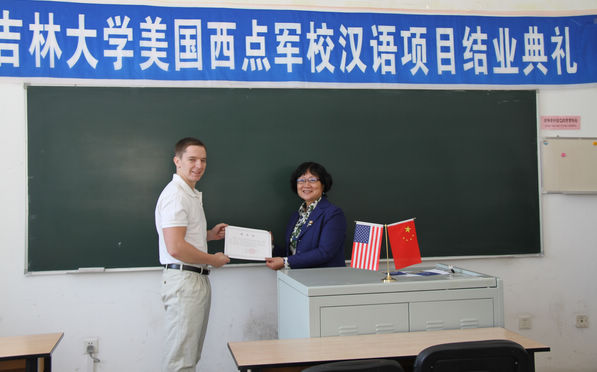 国际语言学院副院长刘富华教授为学员们颁发了结业证书并致辞。学员们庄重地接过饱含着汗水的证书,心情无比激动。刘富华教授在致辞中,高度赞扬了西点学员所表现出的勤奋、刻苦、努力、顽强的精神,对学员们一个学期以来所取得的进步表示了的祝贺,并对项目组每一位任课教师和助教一直以来的辛勤工作给予了高度肯定。最后,她勉励学员们回国之后再接再厉,学好中文,为中美之间的友谊和世界的和平做出贡献。