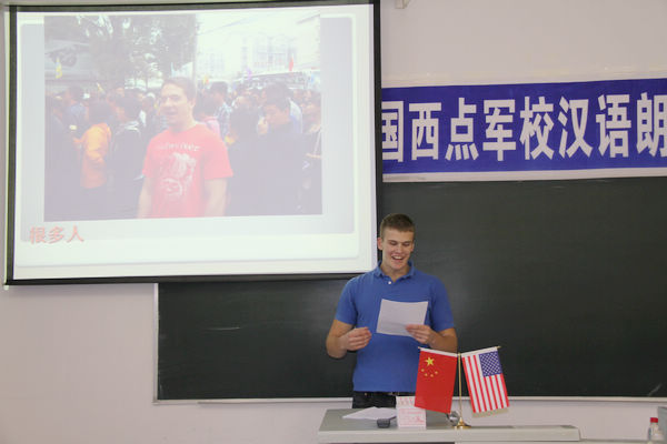 演讲会的主题为“十一长假游中国”,美国西点军校汉语项目班的学员们分别以《我看西安》、《长城》和《国庆游北京》为题,用汉语进行了精彩演讲,他们十一假期在西安半坡遗址、兵马俑、北京故宫、长城等地旅行的见闻。演讲中,学员不仅用汉语形象幽默地讲述旅行中发生的趣事,更透过这些演讲表达了他们对中国的历史文化、社会经济发展以及各地风土人情的新认识、新感悟。学员们准确的选词用句,标准的发音,赢得了老师们的称赞,而妙趣横生讲演配合精彩的PPT,更是引来阵阵掌声。