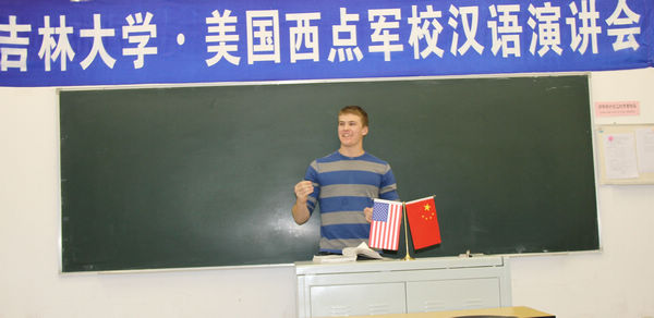 会上,美国西点军校汉语项目班的学员们分别就汉语中的“一字多义”现象、“望子成龙”的教育观和中国高考等话题,运用标准而流畅的汉语进行了生动有趣的演讲。学员金相完演援引中国古代的典故讲述了“一字多义”现象给留学生学汉语造成的重重困难以及克服这些困难的乐趣;学员石傲天讨论了自己对中国父母“望子成龙”这种教育观念的理解;学员容迈修则介绍了中美高考制度的异同,并对中美学生备战高考的不同方式进行了比较。大家对学员们地道、生动的汉语演讲报以热烈的掌声。
