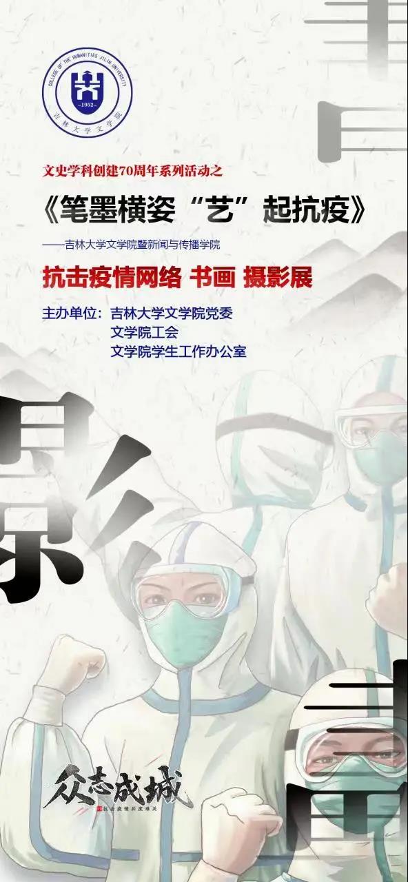 笔墨挥洒,扬传统文化,战疫信念如涓涓细流汇成大海。镜头聚焦,战疫力量如点点星光照亮苍穹。我们坚信,在学院师生和广大校友的齐心协力、共同努力下,必将汇聚起强大的抗疫力量,吉大校园将马上迎来春暖花开。让我们携起手来,凝心聚力打赢这场疫情防控阻击战!