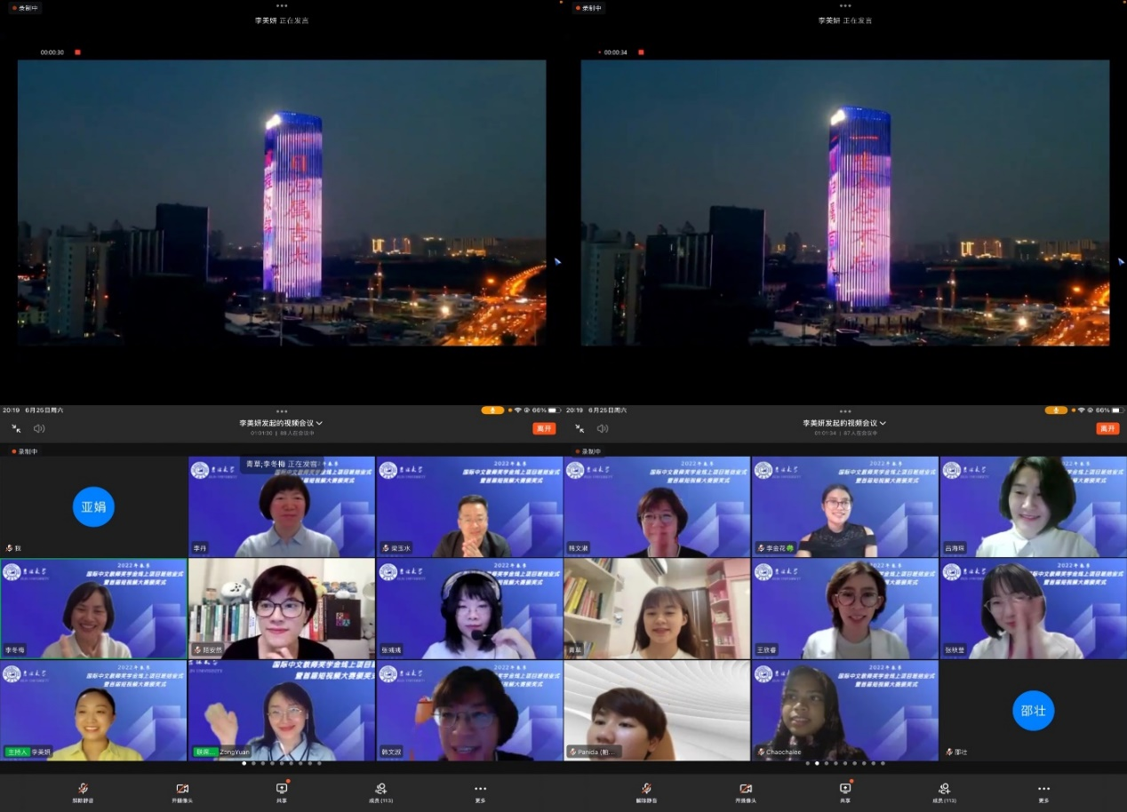6月25日晚,国际语言学院2022年春季“国际中文教师奖学金线上项目班结业式暨首届短视频大赛颁奖仪式”在网络平台顺利举行,来自泰国、越南的100余名学员及全体任课教师齐聚云端,共襄此次盛会。