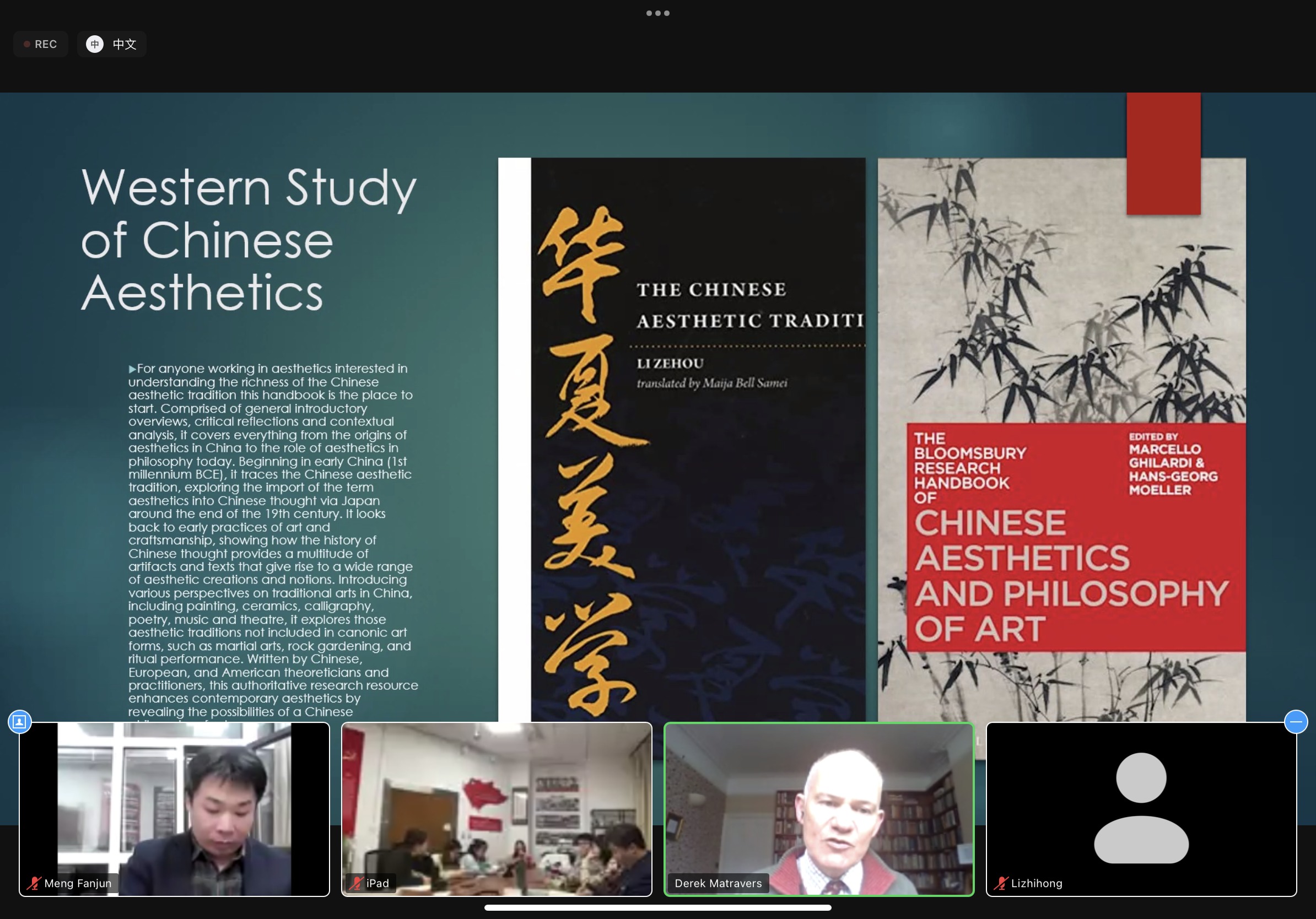 Derek Matervers教授首先从西方哲学“分析哲学”和“大陆哲学”的两个传统引入,回顾了分析美学的近代发展。纵向上,他从分析美学诞生的奠基人G. E. 摩尔到五六十年代战后时期所产生的分化进行了梳理;横向上,从审美判断和批评哲学这两个层面进行了归纳出分析美学的核心议题。其次,Derek Matervers教授按照主题归纳出《英国美学杂志》近年来的发稿的类型,这些为老师和同学们以后的写作或了解分析美学的研究动态非常有帮助。接下来,Derek Matervers教授分享了美学近景中的热点问题:环境美学、文化美学、政治美学和比较美学。最后,Derek Matervers教授为老师和同学们提出了非常重要的论文写作建议,对于中西比较美学方向,以及师生们的日常写作具有重要的借鉴意义。最后,Derek Matervers教授表达了对未来美学发展的光明前景的确信,并期待着日后与4K影视